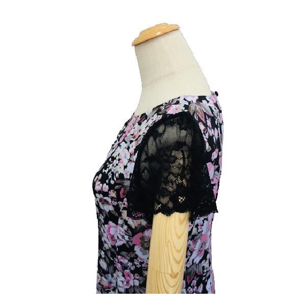 スーパービューティー ワンピース 袖レース フラワーデザイン 半袖ワンピー M L LL 大人かわいい服 2216041 Super Beauty 30代 40代 50代 60代