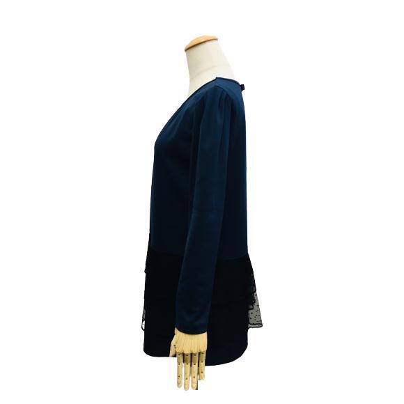 【Pont Neuf エクラタン】チュニック レース使い アシンメトリーチュニック ネイビー L 30代 40代 50代 大人かわいい服 ec213012