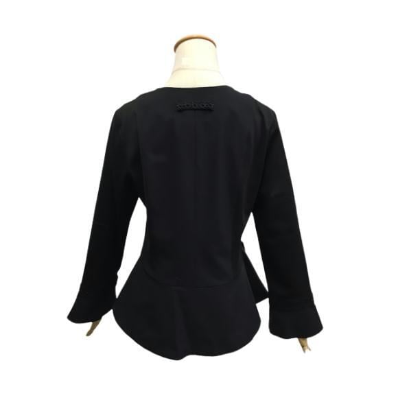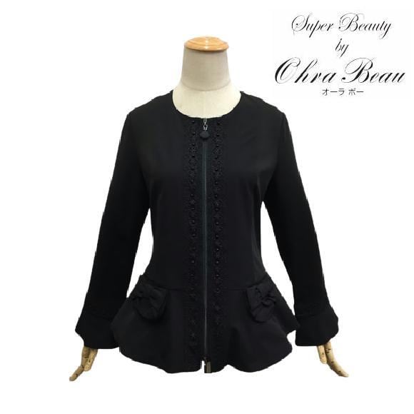 スーパービューティー ショートジャケット Super Beauty 前立てレース 立体ポ ケット異素使いノーカラー ブラック M L LL 40 42 44 大人かわいい服 2217003