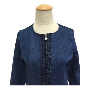 5O%OFF !【Pont Neuf エクラタン】デニム ジャケット コート フリルデザイン パールチャック ストレッチ ネイビー M L 30代 40代 50代 大人かわいい服 ec213071