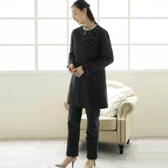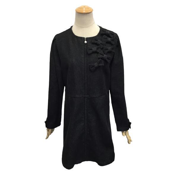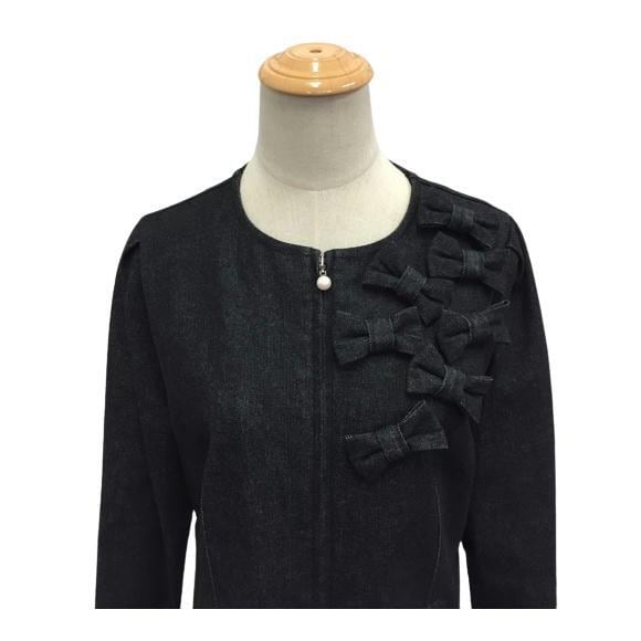 2022年秋冬30%OFF 【Pont Neuf エクラタン】デニム ジャケット コート トレッチ デニムジャケット リボン使いブラック M L 30代 40代 50代 大人かわいい服 EC223004