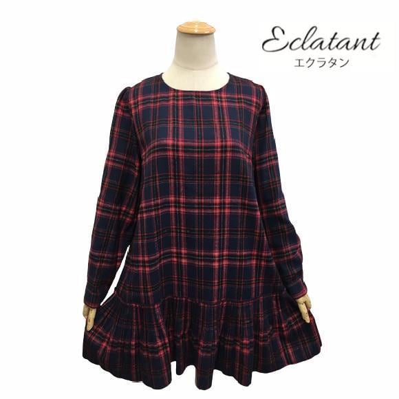 【Pont Neuf エクラタン】2022年秋冬入荷 チュニック タータンチャック レッド パールボタン M L 30代 40代 50代 大人かわいい服 ec223024
