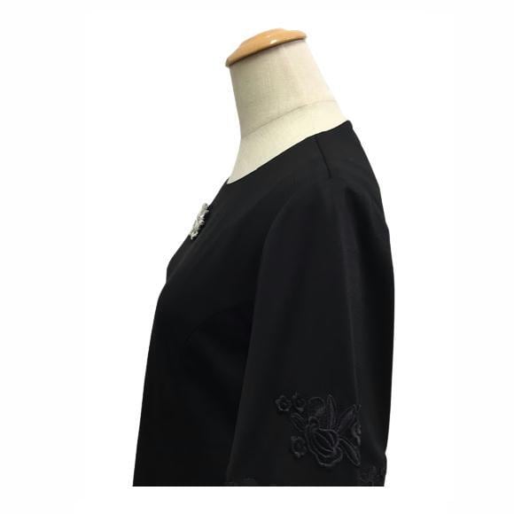 スーパービューティー チュニックカットソー 2022年秋冬 キラキラビジュー付き ブラック M L LL 大人かわいい服 2222001