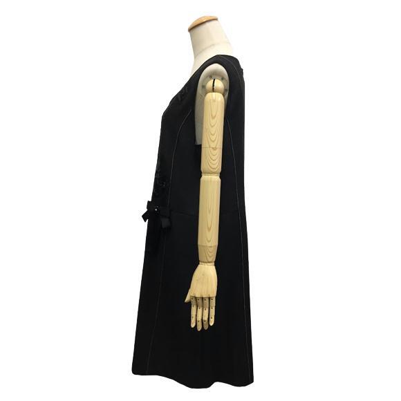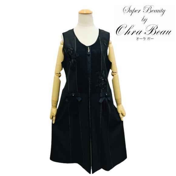 スーパービューティー ワンピース 2022年秋冬 胸元スパンコール刺繡×リボンストレッチデニム素材ジャンパースカート ブラック M L LL 大人かわいい服 2226011