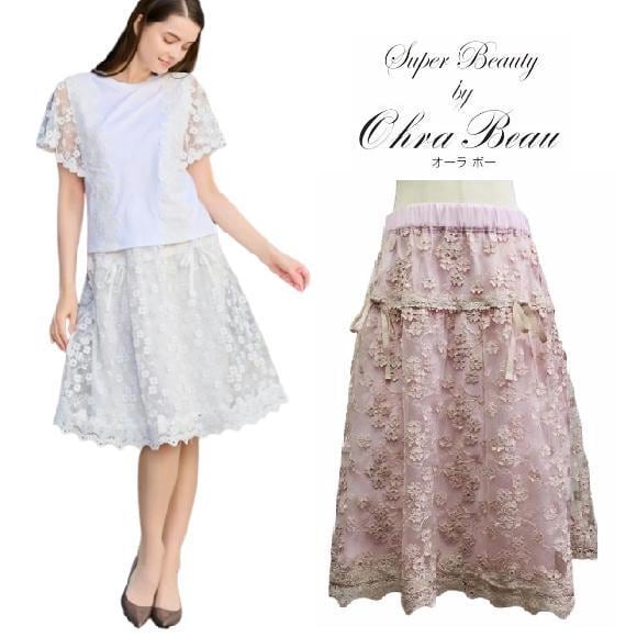 スーパービューティー スカート 花レース飾り チュールスカート ピンク L スーパービューティー42 大人かわいい服 2213006