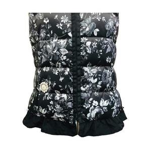 2022年秋冬50%OFF スーパービューティー ダウンベスト 衿レース 裾フリル花柄プリント ベスト ダウン ブラック M L LL スーパービューティ44 大人かわいい服 2227008