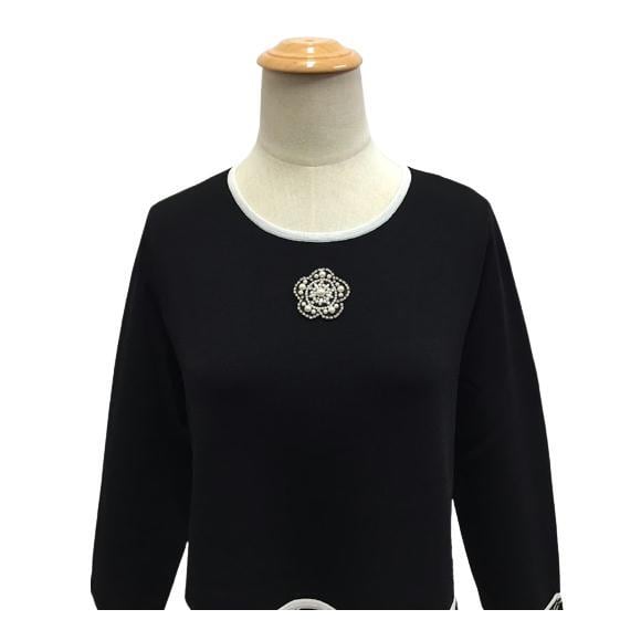 胸元にはビジュー使いの花モチーフ。