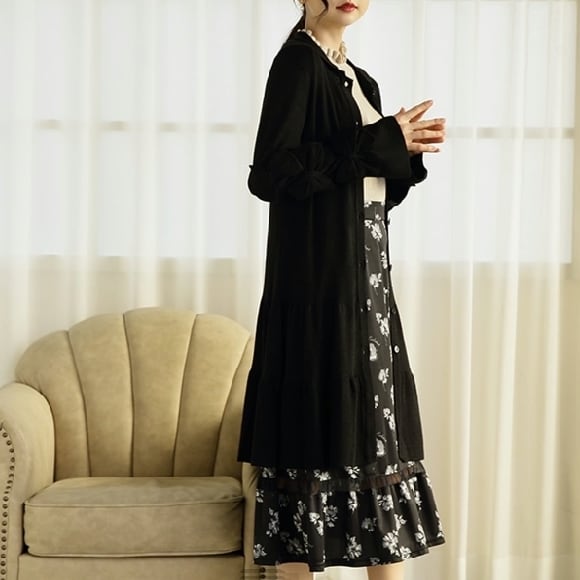 50%OFF エクラタン カーディガン ロングカーディ ブラック M L ポンヌフ 30代 40代 50代 大人かわいい服 ec223078