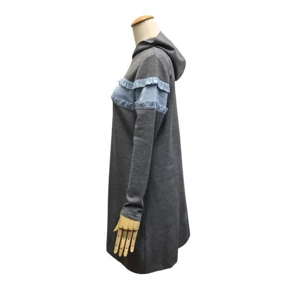 【トワレ toilette 新品】フード付き ニットワンピース グレー M L サイズ3 大人かわいい服 ディリーウェアー 413-993