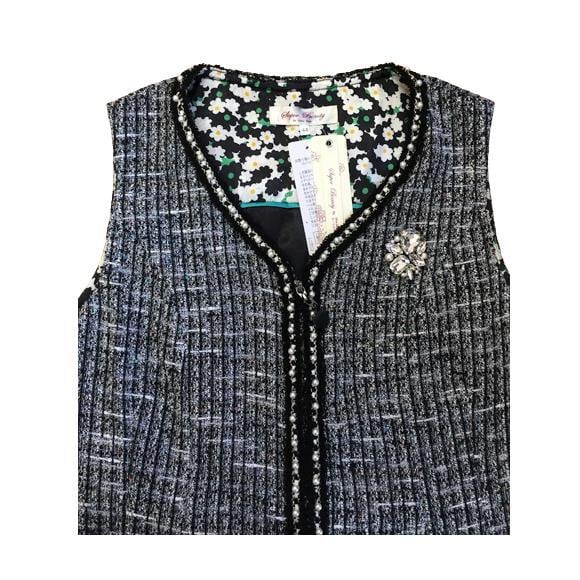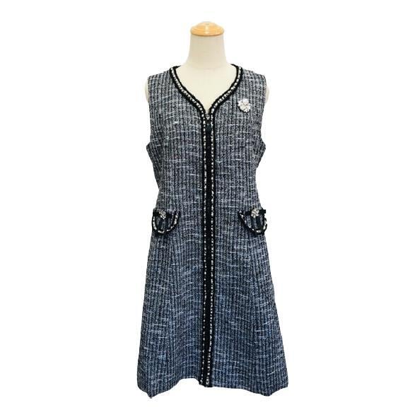 スーパービューティー ワンピース 2022年秋冬 花前立てパールビーズ使いツイード ジャンパースカート M L LL 大人かわいい服 2226016 スーパービューティー44