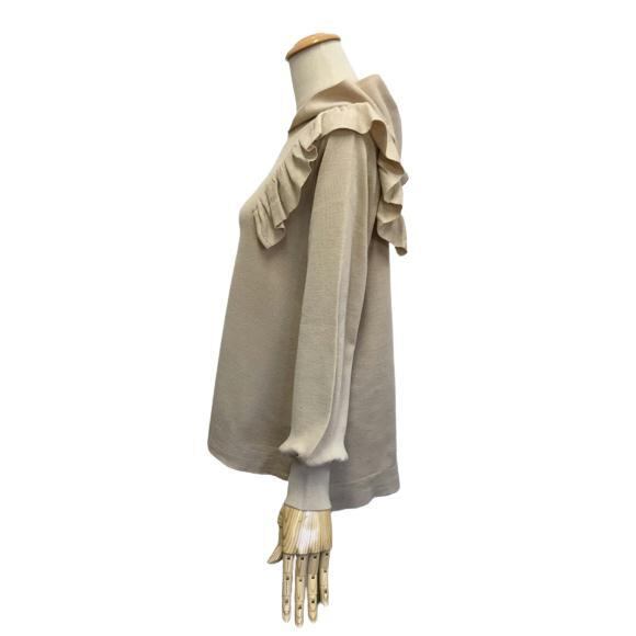 【トワレ toilette 新品】ニットプルオーバー フード&ショルダーフリル ベージュ M L サイズ1 大人かわいい服 ディリーウェアー 416-996