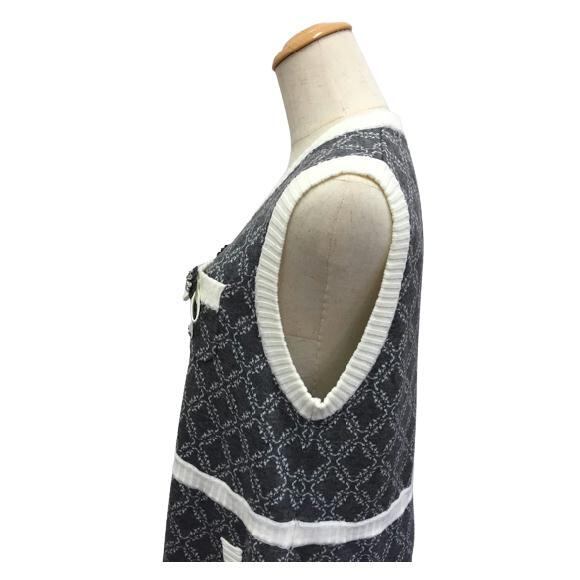 2022年秋冬50%OFF スーパービューティー ロングベスト ジャガード編みV開きデザイン配色ニット ジレ グレー M L LL スーパービューティー44 大人かわいい服 2221030