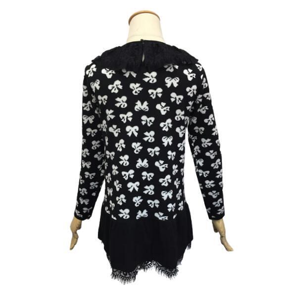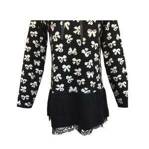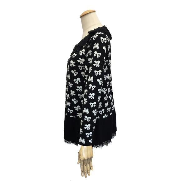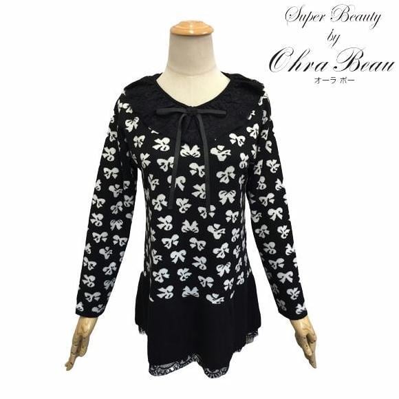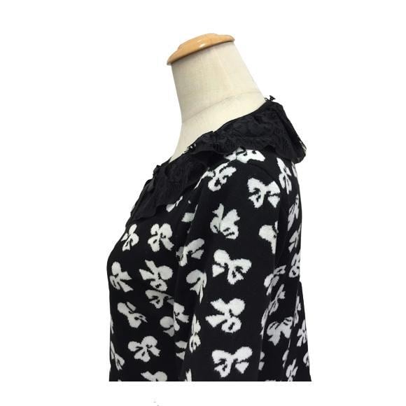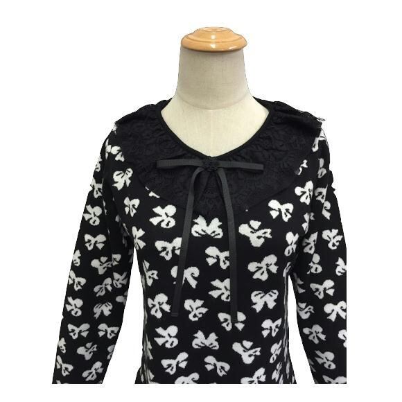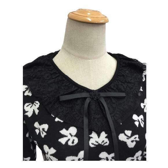 2022年秋冬50%OFF スーパービューティー セーター リボン柄ニット襟レース リボン ブラック M L LL スーパービューティー44 大人かわいい服 2221040