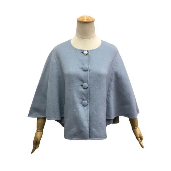 50%OFF【Pont Neuf ポンヌフ 新品】ウールケープコート ブルー L 働く女子 通勤コーデ 大人可愛いコーディネート BA3068