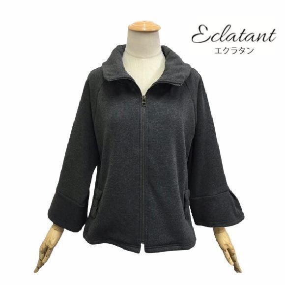 エクラタン ジャケット 裏起毛 リボン付 カジュアル グレー M L ポンヌフ 30代 40代 50代 大人かわいい服 EC213062