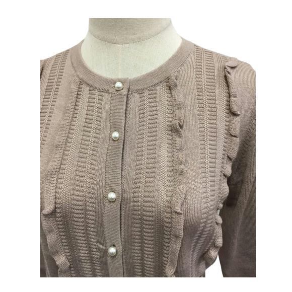 エクラタン カーディガン パールビーズボタン ボーダーフリル ベージュ M L ポンヌフ 30代 40代 50代 大人かわいい服 EC213082