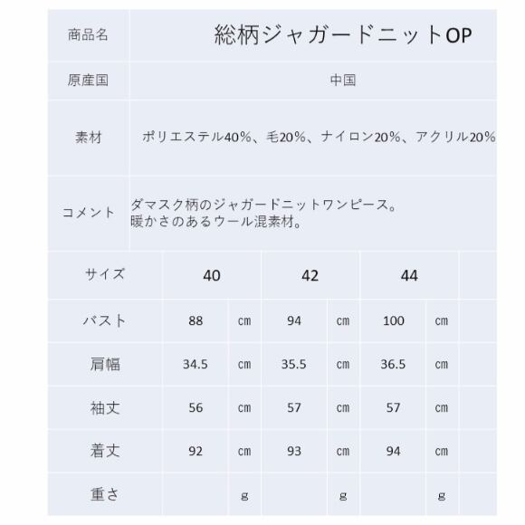 ダマスク柄のニットワンピースです。