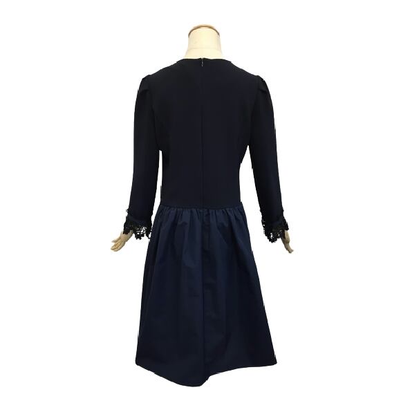 2022年秋冬30%OFF エクラタン ワンピース パール付きデザインレース ネイビー M L ポンヌフ 30代 40代 50代 大人かわいい服 EC223063