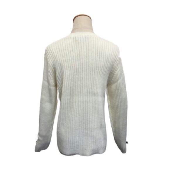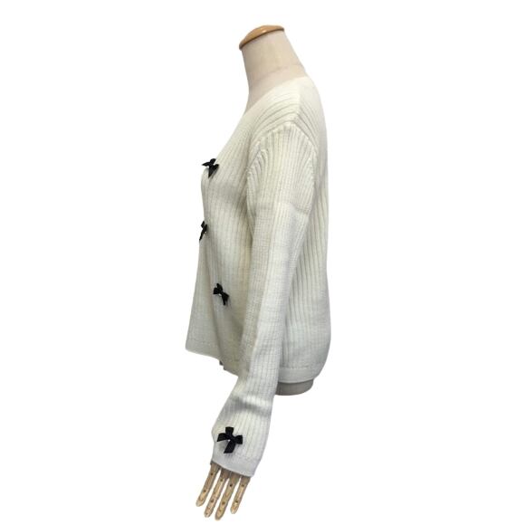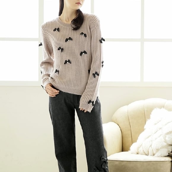 2022年秋冬30%OFF エクラタン セーター パールリボンデコレーションニット オフホワイト M L ポンヌフ 30代 40代 50代 大人かわいい服 EC223077