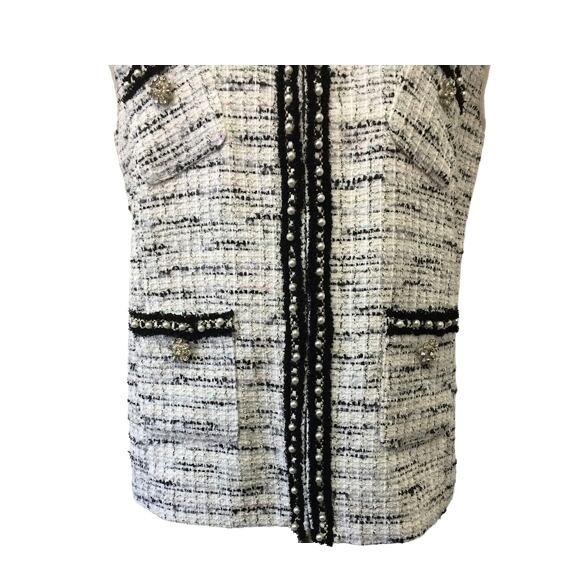 2022年秋冬50%OFF スーパービューティー ベスト 前立てパールビーズ使いツイード キルティング ホワイト M L LL スーパービューティー42 大人可愛い 大人可愛い 2227005