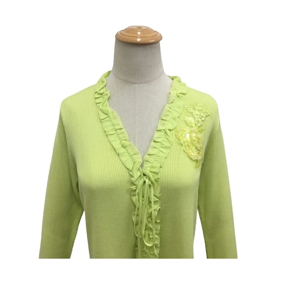 スーパービューティー ロングカーディガン Super Beauty 花モチーフ フリル ロングカーディ LL 30代 40代 50代 60代 大人かわいい服 2211024