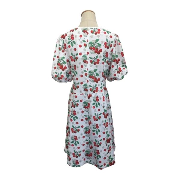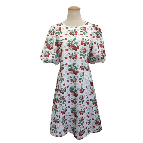 スーパービューティー ワンピース 2023年春夏入荷 Super Beauty チェリープリント 5分袖ワンピー ホワイト M L LL 30代 40代 50代 60代 大人かわいい服 2316001