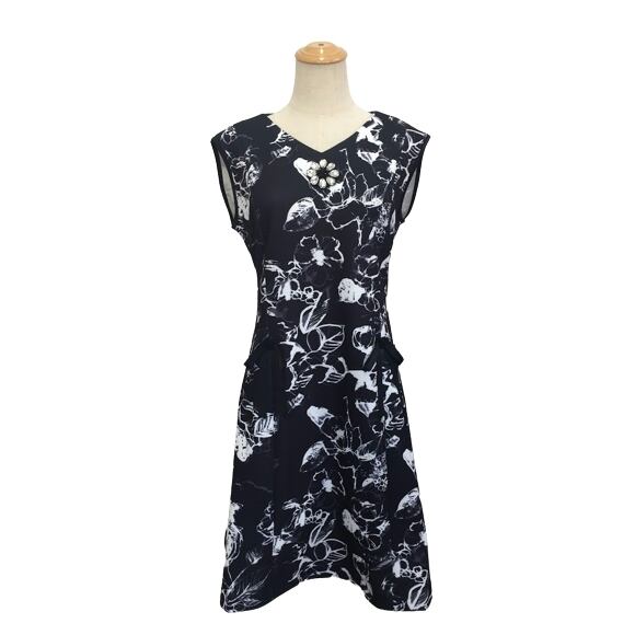 スーパービューティー ワンピース 2023年春夏 Super Beauty モノトーン フラワー ノースリーブワンピ ブラック M L LL 30代 40代 50代 60代 大人かわいい服 2316004