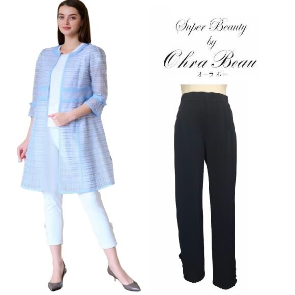 スーパービューティー パンツ 2023年春夏入荷 オーラボー Super Beauty 裾サイドリボン&パール使いハイテンション ブラック M L LL 30代 40代 50代 60代 大人かわいい服 2314005