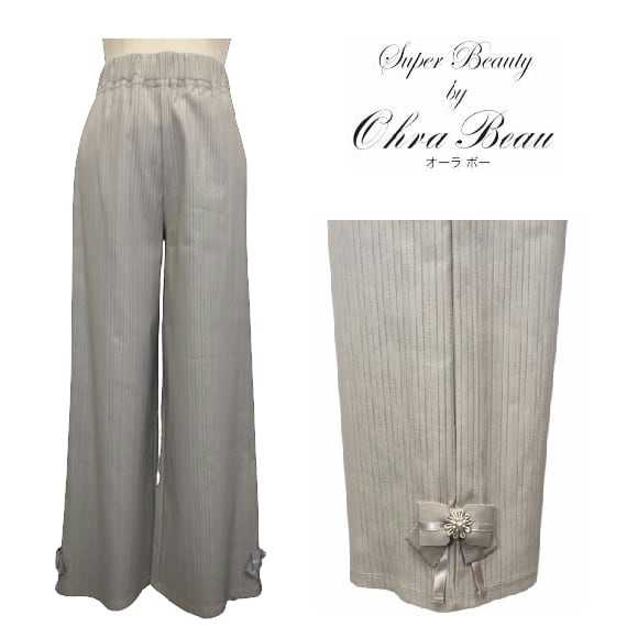 スーパービューティー パンツ 2022年秋冬 グログランテープ 薄手 裏起毛 ワイドパンツ ベージュ M L LL 2224010 スーパービューティー40 大人かわいい服