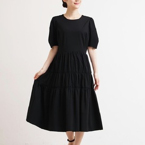 2023年春夏入荷 エクラタン ワンピース ティヤード 上質コットン ネイビー Aライン M L 30代 40代 50代 EC231028 大人可愛いコーディネート
