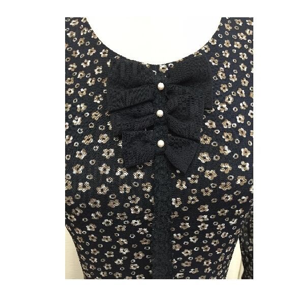スーパービューティー ワンピース オーラボー Super Beauty パワーネット 花モノトーン 胸元リボン ワンピー M L LL スーパービューティー44 30代 40代 50代 60代 大人かわいい服 2226003