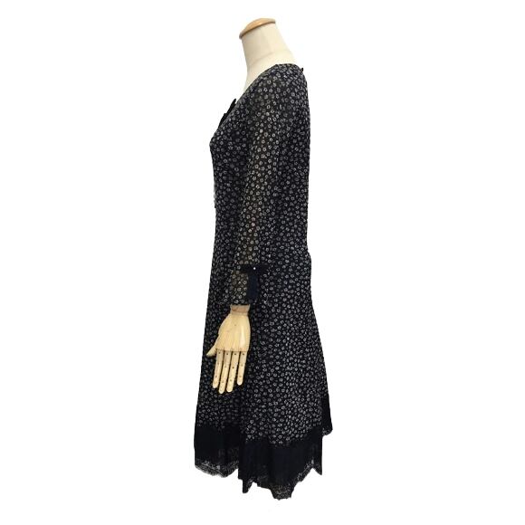小花プリントの胸元リボンワンピースです。