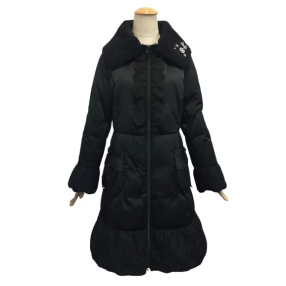 スーパービューティー ダウンコート オーラボー Super Beauty ボア衿×レース切替 M L LL 40 42 44 ブラック スーパービューティー42 30代 40代 50代 60代 大人かわいい服 2228007
