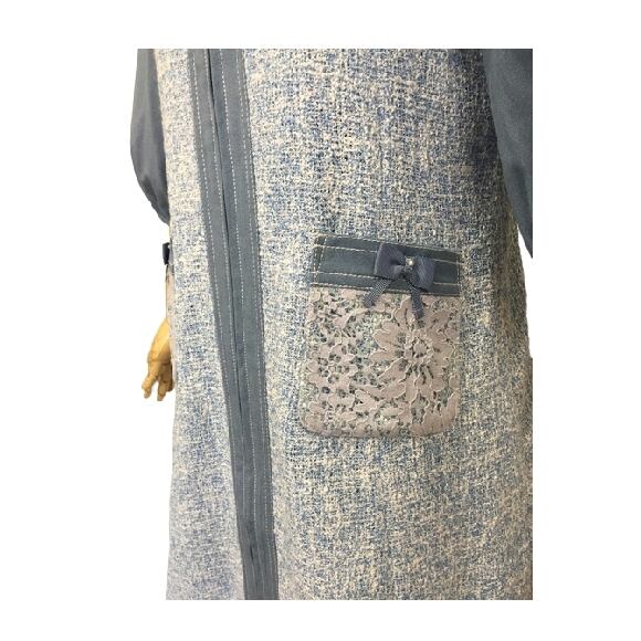 スーパービューティー ワンピース 2023年春夏入荷 スプリングツイード デニム切替 ジップアップ 5分袖 オーラボー Super Beauty ブルー M L LL 30代 40代 50代 60代 大人かわいい服 2316003
