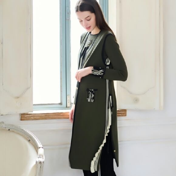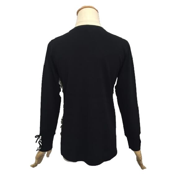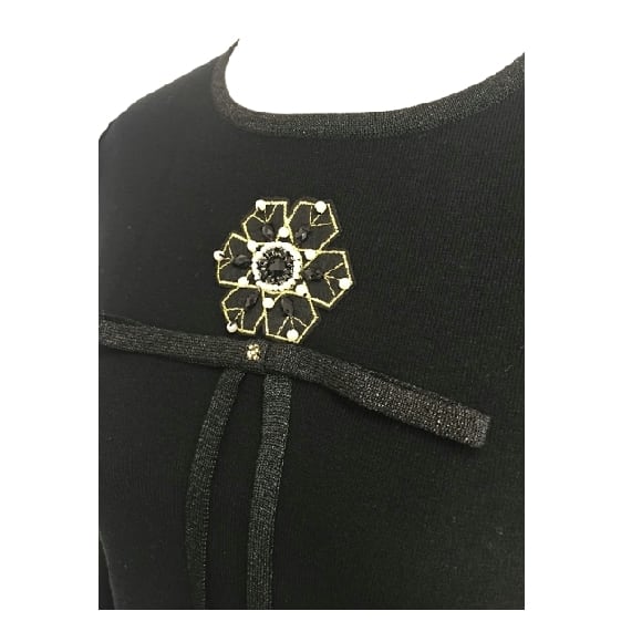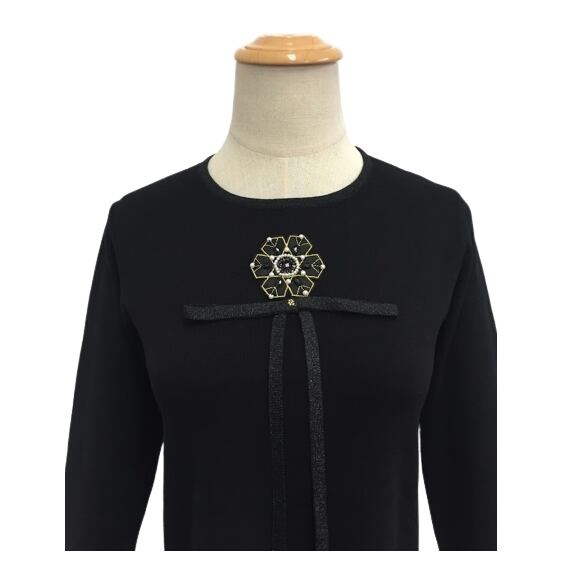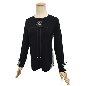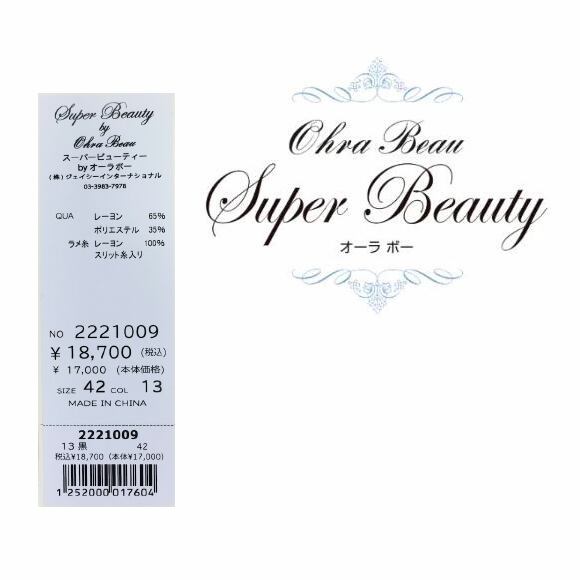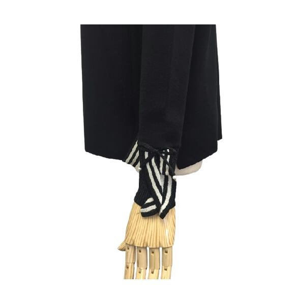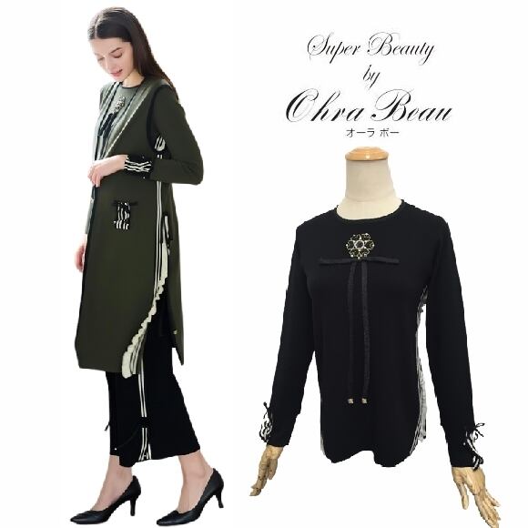 スーパービューティー セーター オーラボー サイド配色フリルスリット入り胸元ビジュー リボン ブラック M L LL 2221009 30代 40代 50代 60代 Super Beauty 大人かわいい服