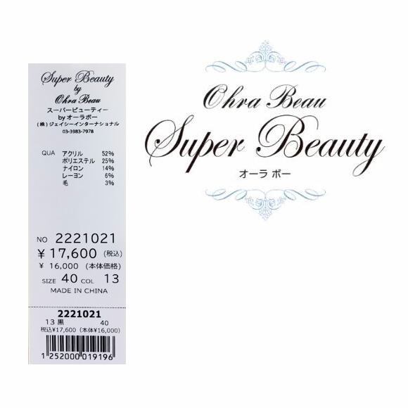 スーパービューティー カーディガン オーラボー パールビーズボタンデザインニットカーディ ブラック M L LL 2221021 30代 40代 50代 60代 Super Beauty 大人かわいい服