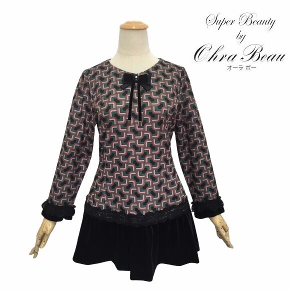 秋冬50%OFF スーパービューティー チュニック ポンチ ベロア切替 グリーン M L LL スーパービューティー42 2222003 30代 40代 50代 60代 Super Beauty 大人かわいい服