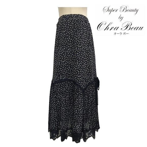 秋冬50%OFF スーパービューティー スカート 小花モノトーン柄 パワーネット レース使い ネイビー M L LL スーパービューティー44 2223001 オーラボー 30代 40代 50代 60代 Super Beauty 大人かわいい服