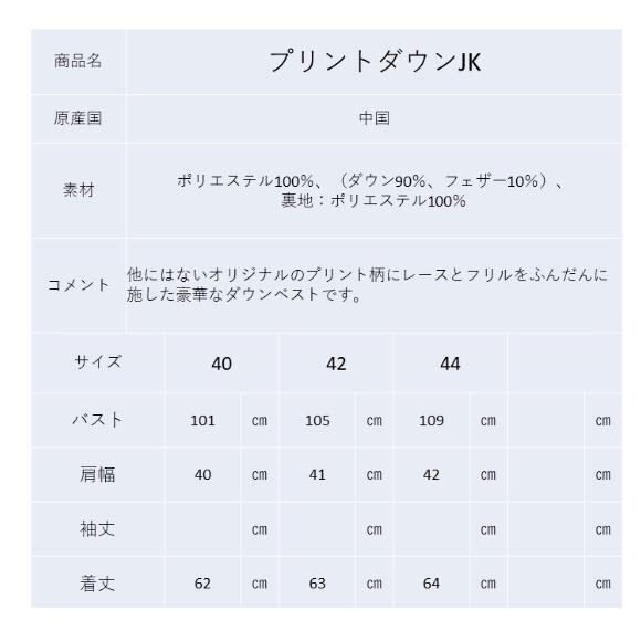 秋冬50%OFF スーパービューティー ダウンベスト 衿レース 裾フリル花柄プリント ベスト ダウン 白 M L LL スーパービューティー44 30代 40代 50代 60代 大人かわいい服