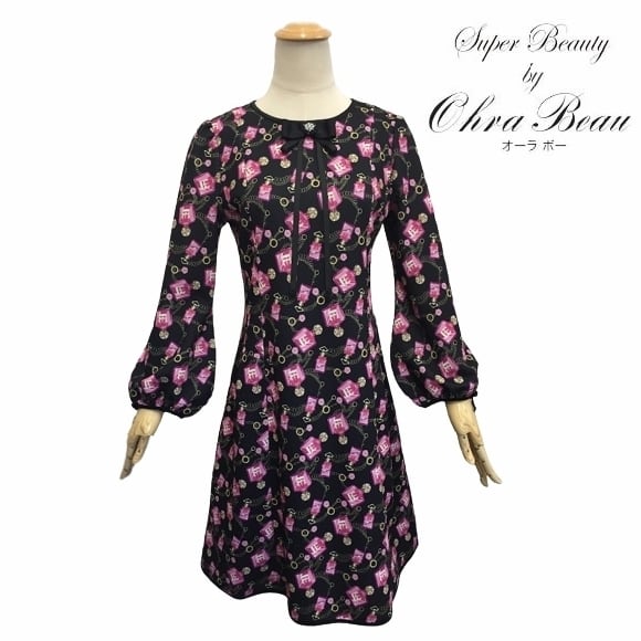 秋冬50%OFF スーパービューティー ワンピース オーラボー 香水瓶 胸元リボン ワンピー Super Beauty レッド M L LL スーパービューティー40 2226009 30代 40代 50代 60代 大人かわいい服