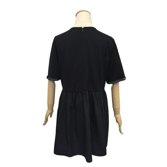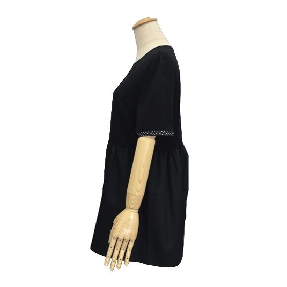 2023年春夏入荷 エクラタン チュニック カットソー 袖レース エレガント ブラック M L 30代 40代 50代 EC231052 働く女子 通勤コーデ 大人可愛いコーディネート