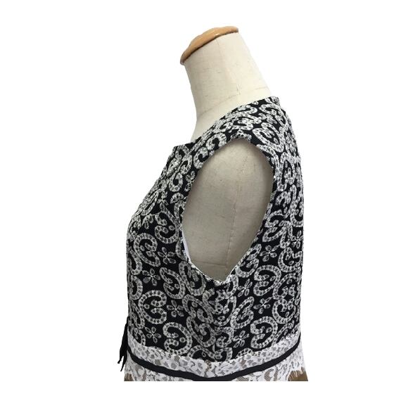 刺しゅう素材×タフタ素材のドッキングワンピースです。