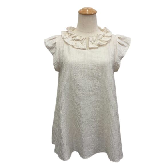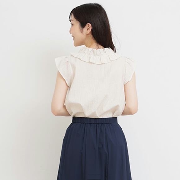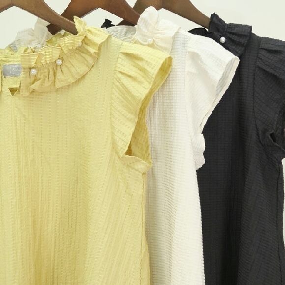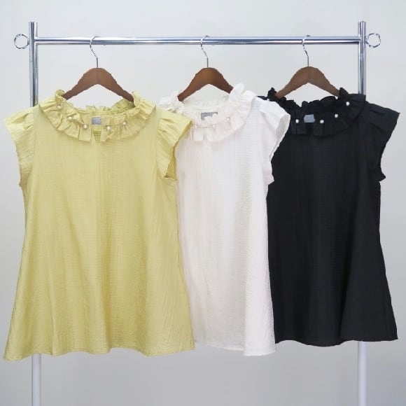 パール付きラッフルサマーブラウス。