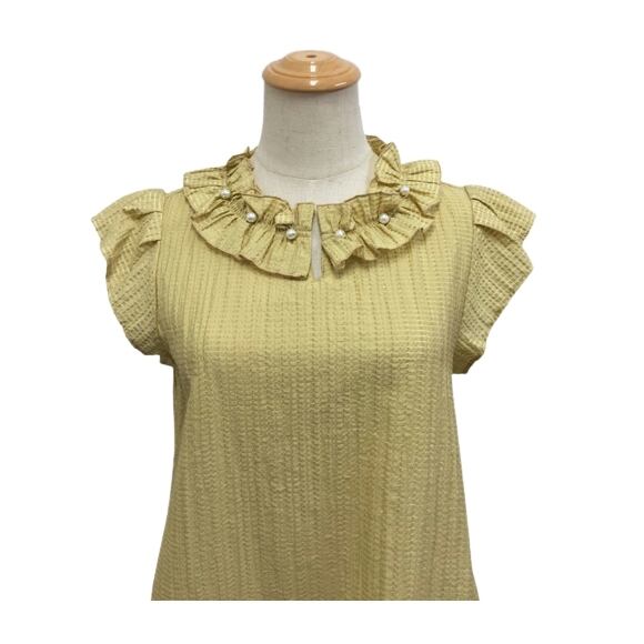 2023年春夏入荷 エクラタン カットソー ラッフルサマーブラウス イエロー M L 30代 40代 50代 EC231068 働く女子 通勤コーデ 大人可愛いコーディネート