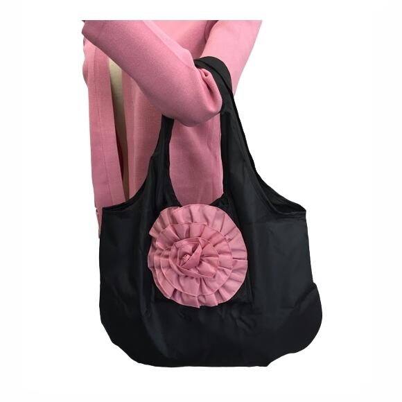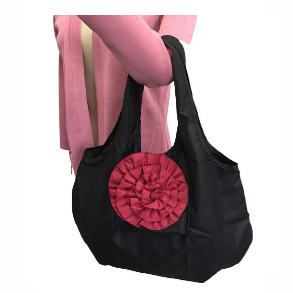 【ラ・ルイス 新品】エコバック ばら ローズ かわいい おしゃれ ポケットの中に収納 ピンク レッド 軽量 Sサイズ 大人可愛い
