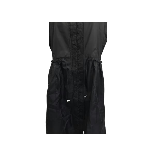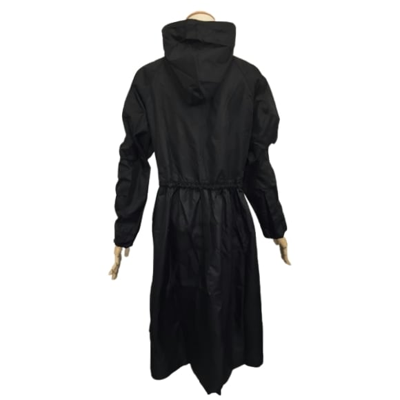 【ラ・ルイス 新品】フード付きフリルレインコート 収納バッグ付き かわいい おしゃれ ブラック 軽量 大人可愛い03AKSR-201