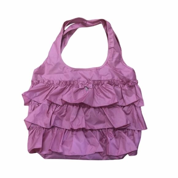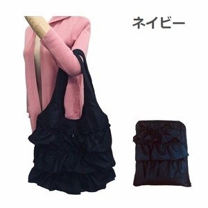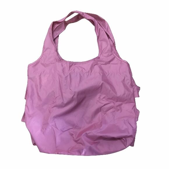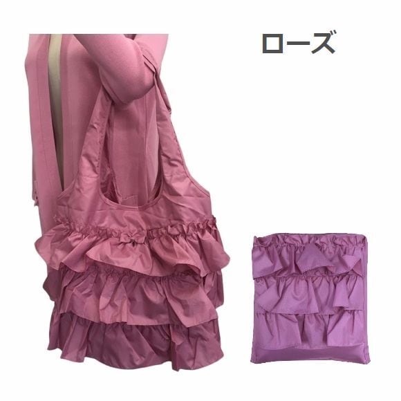 【ラ・ルイス 新品】エコバック 大きいフリル かわいい おしゃれ ポケットの中に収納 ピンク ブラック 軽量 Lサイズ ラ・ルイス