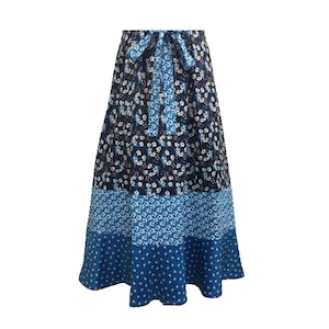 ブルー系のパネルプリント切替ワンピースです。
