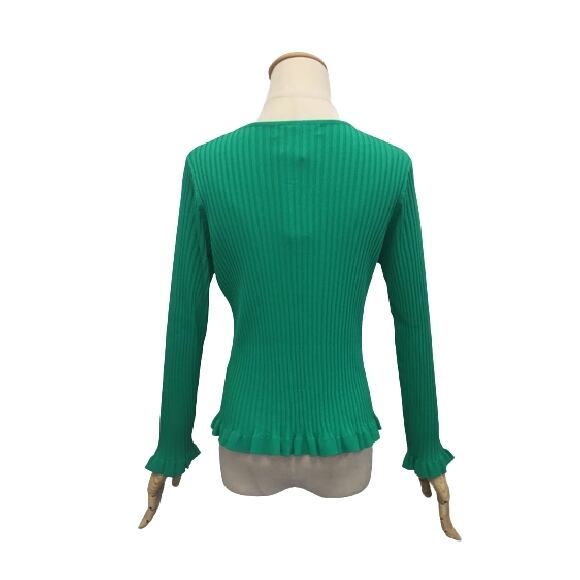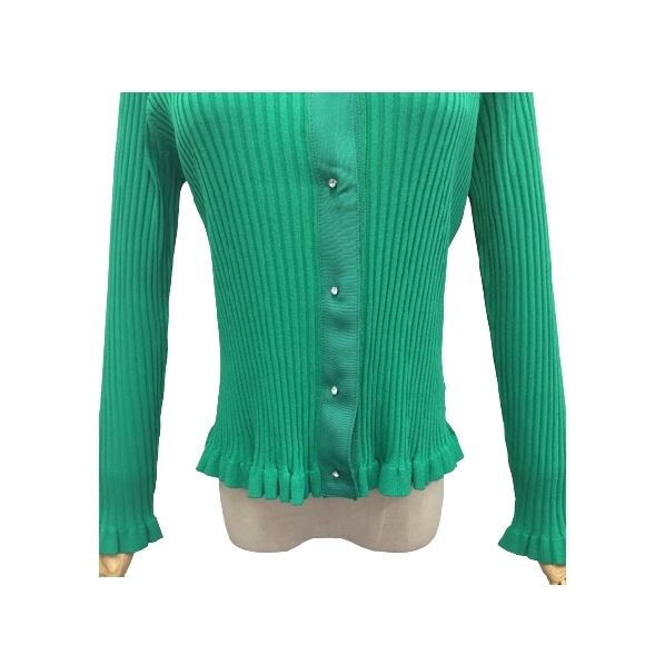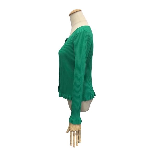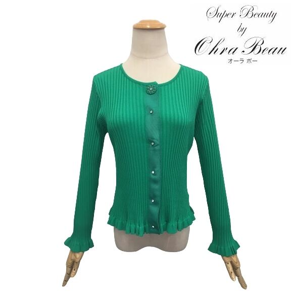 スーパービューティー カーディガン 裾フリル ワイドリブ編みカーディガン グリーン 2211019 オーラボー 大人かわいい服 ミセス キレイメ レディース アパレル 女性 M L LL 30代 40代 50代 60代