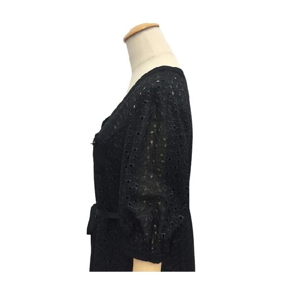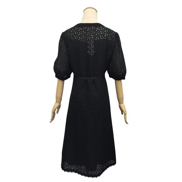 スーパービューティー ワンピース 2023年春夏入荷 レース素材 5分 パフ袖 キャミ付 前開き ブラック M L LL 30代 40代 50代 60代 2316026 大人かわいい服